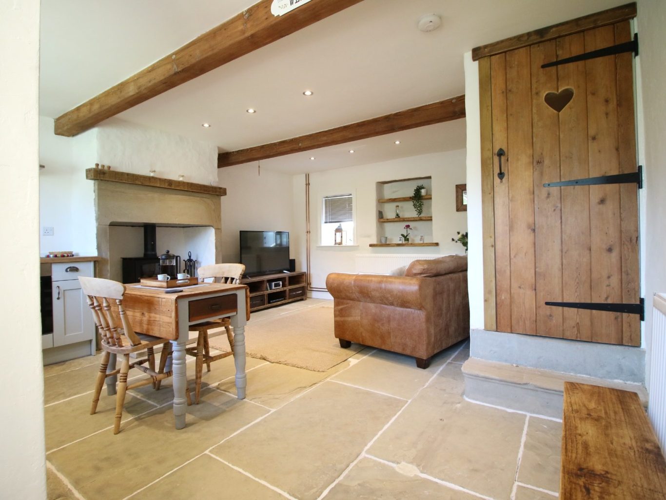 From the moment you enter the cottage you are greeted by the original Yorkstone flooring  and the wonderful sandstone fireplace, and original oak beams. This is a tiny cottage with a big welcome!